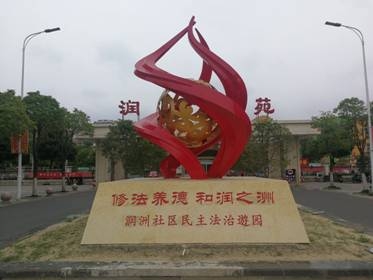 为深入推进“七五”普法工作,弘扬法治精神,拓展法治宣传形式,提高法治文化建设实效,高港区永安洲镇依托润州花苑小区,打造永安洲镇民主法治游园,游园以“修法养德,和润之洲”为主题,旨在引导广大群众在休憩游玩过程中,感受法治文化的熏陶,提高自身的法律素养。 游园以“修法齐家,德法同行”为主要内容,采用群众喜闻乐见的形式来布法养德,弘扬法“精神”,落根法“治”,主体分为“德法篇”、“尊宪篇”、“崇法篇”“自治篇”、“德治篇”五大篇章,涵盖德法广场、宪法广场、法治长廊、民主阁、成长树、信仰之门等多组法治文化系列作品。一是文化传承 美丽传说孕育法德精神。德法广场是入园的必经之路,“修法养德,和润之洲” 的主题造型,将代表悠久“八仙女”文明的红色丝绸与象征 “江北明珠”德、法圆球相互交缠环抱,寓意永安洲镇2000多年经济、文化文明与“法”“德”精神孕育了深厚的文化与财富,而在未来的经济与文化发展中也要始终拥护着这个灵魂核心,交替上升,稳定发展。二是宪法开路 因地制宜融入法治元素。游园入口的法治碑,让群众在第一视觉点,铭刻十九大依法治国的核心思想;观景池中央的宪法基石造型,以庄严肃穆的形式向参观的群众阐述着宪法精神和法治信仰;法治小路,贯穿法治公园的各个区域,采用图文并茂的表现方法,涉及古今中外的法治名人、法治格言、法治警言以及与居民生产生活密切相关的法律知识等内容,并与自然生态完美结合,让漫步于法治小路的群众印象深刻。三是德法共建 传统美德与民主法治同行。法若春风梳万物,德如化雨润千家, “自治”“德治”两大篇章以“问需于民 修法齐家”为主旨,将中华民族的传统美德与民主法治相融合,以道德滋养法治精神、强化道德对法治文化的支撑作用,使法治和德治相得益彰,实现“法安天下 德润人心”。